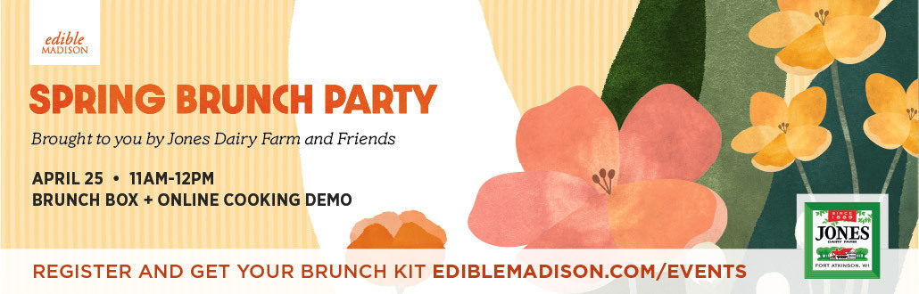 Join Edible Madison, Jones Dairy Farm and Chef Dan Bonanno for a virtual cooking demo on Saturday, April 25th. We’ll be cooking up a cozy brunch of local goodness with ingredients from Jones Dairy Farm, Roth Cheese, Riemer Family Farm, Kingston Creamery, Meadowlark Community Mill, Hidden Springs Creamery, Maple Valley Cooperative, Ruby Coffee Roasters, Pasture and Plenty, Lovefood Farm and Telsaan Tea.