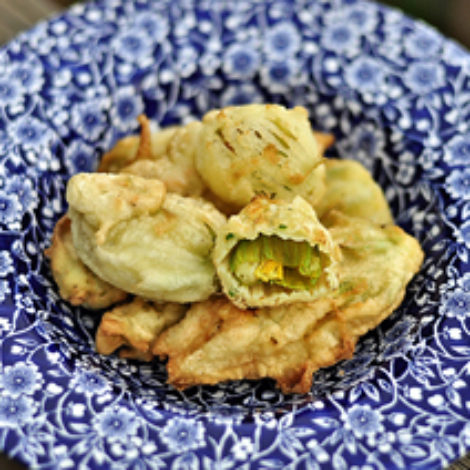 - Batter and fry the blossoms on their own or stuff with cheese, prosciutto and spices, batter and fry.