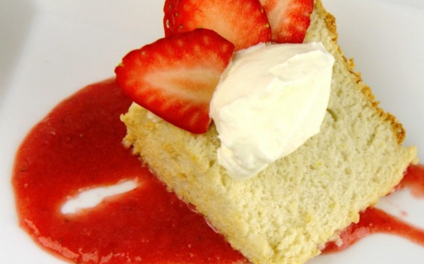 Angel Cake with Strawberry Orange Coulis