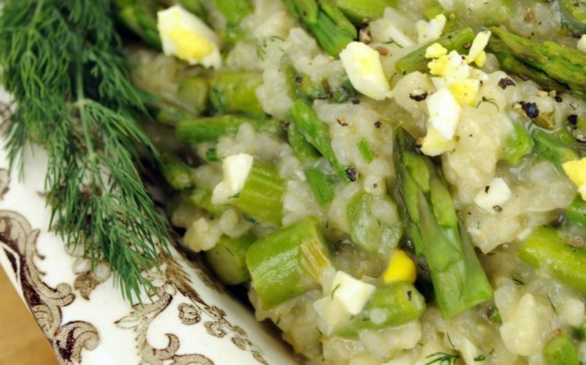 Asparagus Dill Risotto with Egg Crumbles