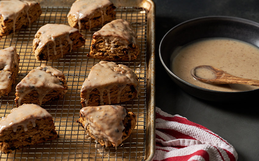 Brandied Currant Vegan Scones with “Eggnog” Glaze