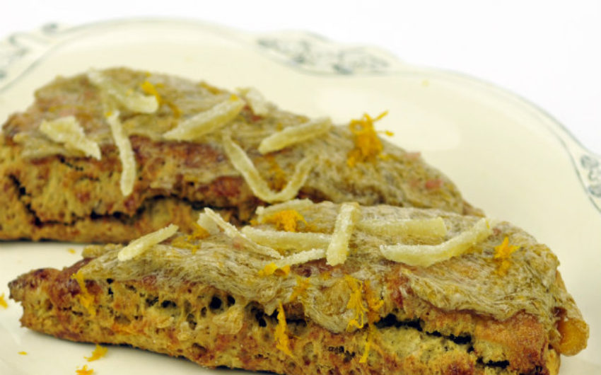 On a floured surface, press dough into a 1-inch thick rectangle and cut into 8 large or 16 small triangles. Place on a parchment-lined sheet pan and bake for 12 to 16 minutes, depending on size, until golden brown. Let cool on racks while you make the glaze.