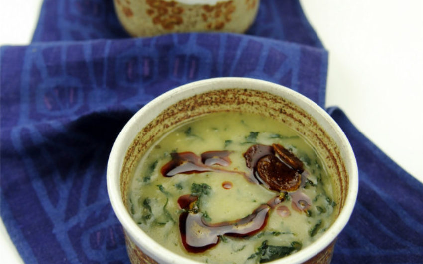 This unique Portuguese soup is spiced up with chorizo and a drizzle of spicy oil.