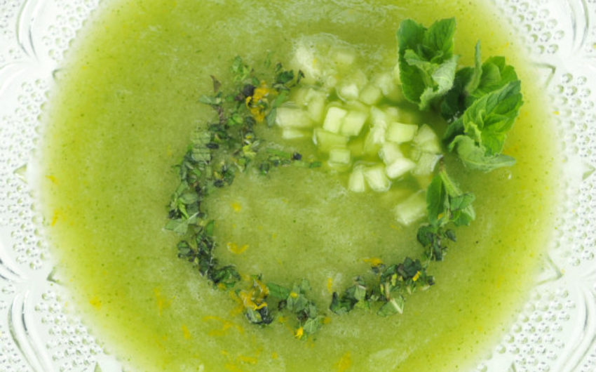 Chilled Honeydew Soup with Lemon, Mint & Dry Rosé