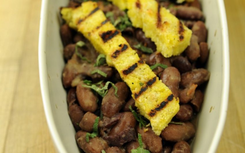 Cranberry Beans & Bison Bacon with Grilled Polenta