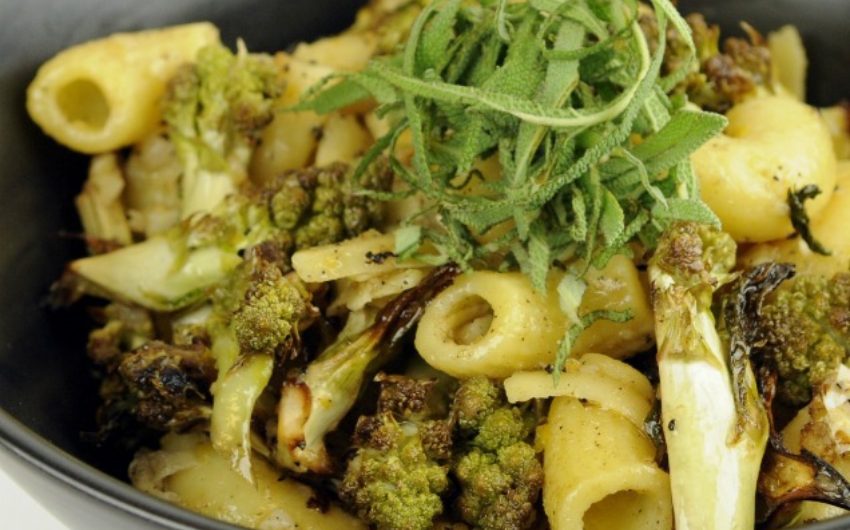 To serve, slip the garlic from its skins and add the roasted garlic, roasted Romanesco, browned butter and lemon zest to the pot containing the cooked pasta. Toss to coat and taste for salt and pepper. Serve sprinkled with fresh chopped herbs.