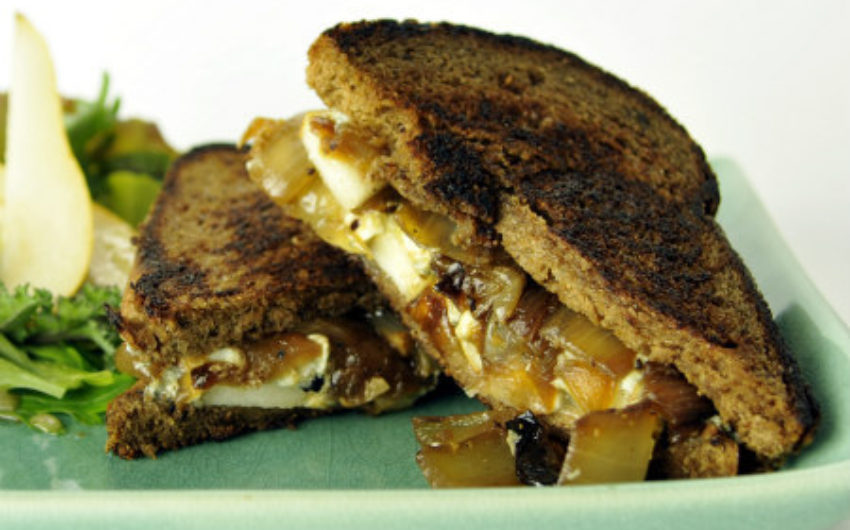 Chile-spiked blue cheese plus pears and caramelized onions make this a sandwich you’ll linger over.