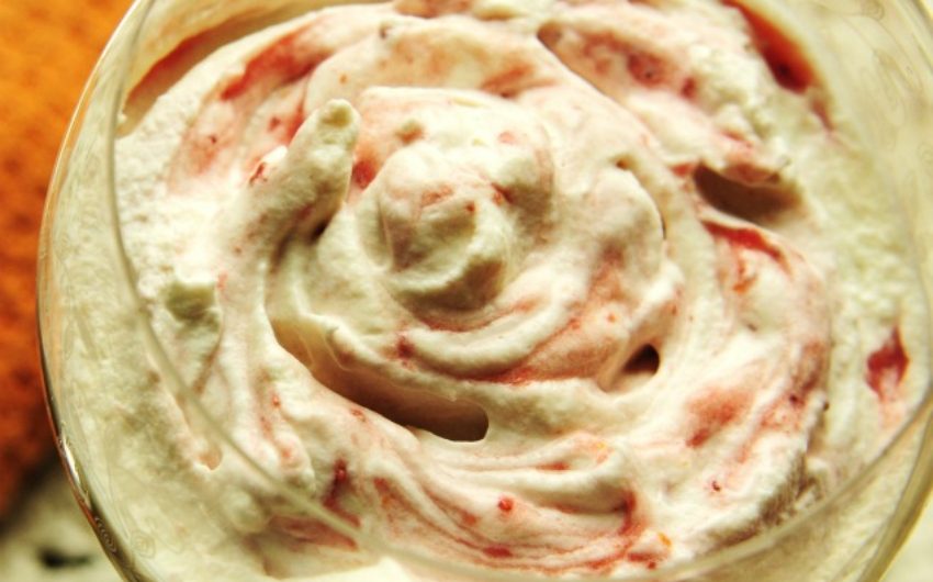 Stir a large dollop of whipped cream into the chilled rhubarb sauce.