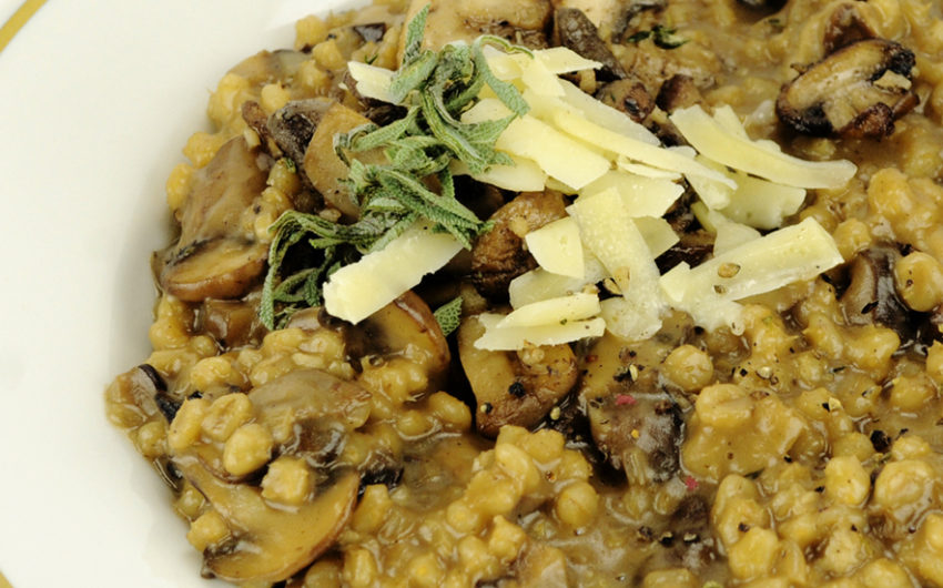 When barley is soft and the risotto is thick and creamy, stir in the butter and Parmesan, then fold in the mushroom mixture. Taste and adjust salt and pepper as desired. Garnish with parsley and serve immediately.