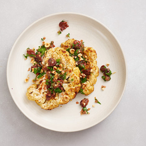 Spiced Cauliflower Steaks with Warm Tart Cherry Vinaigrette