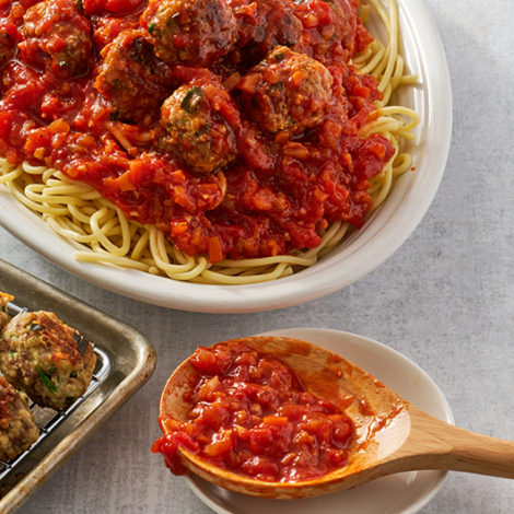 Spring Green Meatballs with Marinara