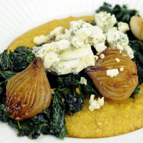 Polenta with Glazed Onions & Kale