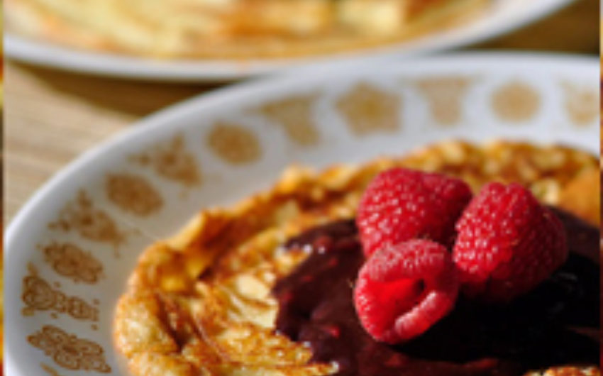 Immediately stir in the mashed raspberries and drizzle inside and over the crepes.
