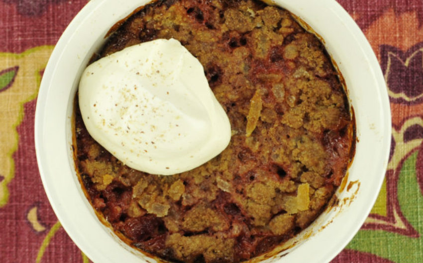Rhubarb Custard Crisp with Crystallized Ginger