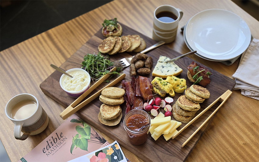 Dan Bonanno presents a Spring Blini Brunch Board featured during Edible Madison's Spring Brunch Party, brought to you by Jones Dairy Farm.