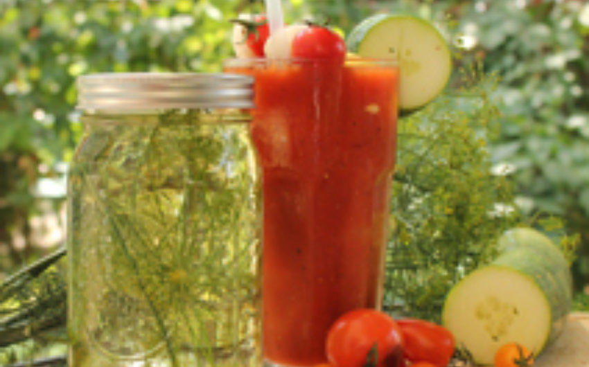 To make the dill-infused vodka, stuff a handful of fresh dill into a one quart Mason jar and top with your favorite vodka. Cover and let sit for three to five days. If it lasts beyond five days without entering someone’s belly, remove the dill to avoid a bitter taste. Seal tightly and store in a cool, dark place until time to meet its Bloody Mary destiny.