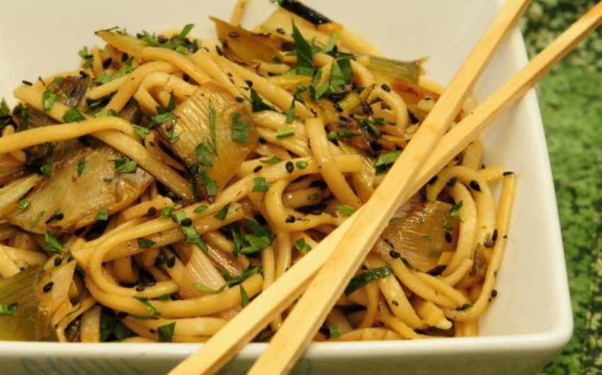 Tamari & Maple Grilled Leeks with Udon Noodles