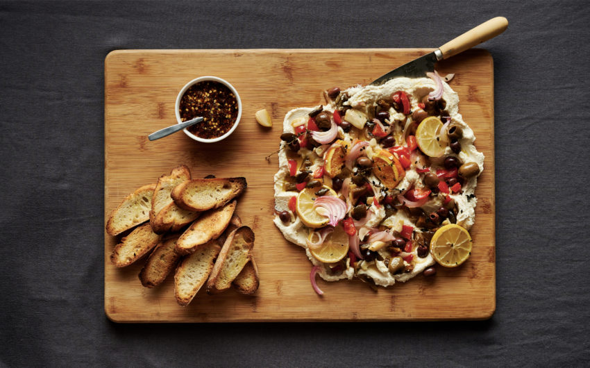 Straight from her Viroqua shop’s winter menu, Sarah’s recipe is fabulous for a quick holiday appetizer or alongside a crisp green salad for dinner. Local feta and cream cheese are whipped together before being topped with an array of olives and warm roasted peppers (or substitute 1 cup of whatever seasonal vegetables you have on hand). Whatever you do, just don’t skip the sourdough baguette rubbed with garlic—it’s what really takes this recipe over the top.