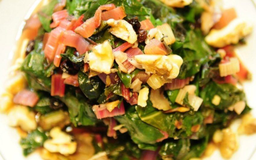 Stir about 2 minutes until all the chard leaves are wilted. Add currants, stir and cook for another couple minutes, until liquid is evaporated.