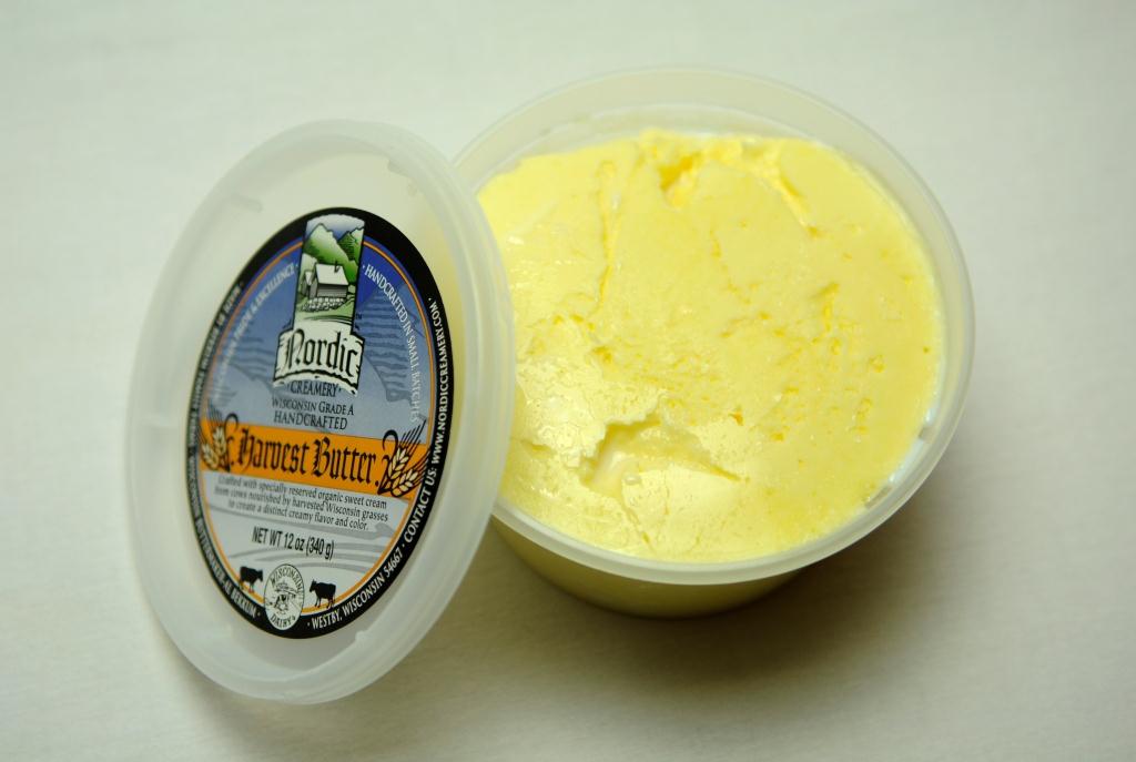 If you can’t find Nordic Creamery specialty butters, you’re likely to find Hand-Rolled butter from Alcam Creamery in Richland Center. For more than 40 years, this Wisconsin company has crafted hand-rolled butter that is never pumped, just churned and literally rolled by hand into logs, then wrapped in paper.