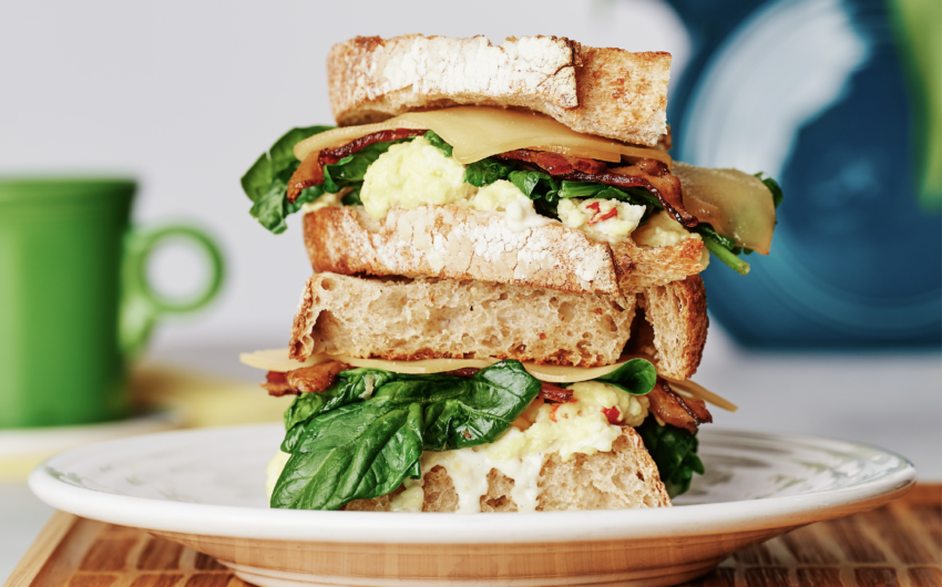 Bacon, Egg & Cheese Sourdough Sandwich with Overwintered Spinach