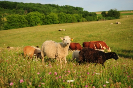 Bonnie and Craig manage a herd of 24 Hereford-Red Devon mix beef cows (including one large Red Devon bull by the name of “Fuzzy Bear”) and 200 Katahdin sheep, a breed from north central Maine with high resiliency and low-input management needs.