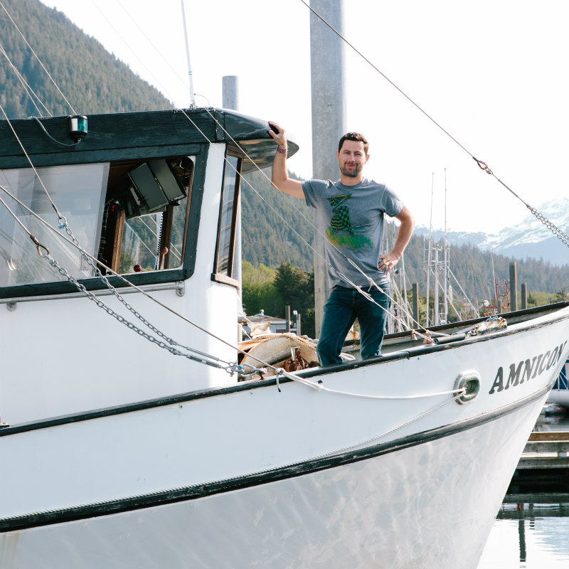 Joe Daniels has just docked his fishing boat, a 50-footer called “The Amnicon,” for what’s expected to be a gusty three-day storm with winds at 50 to 60 knots. He’s a little worried about losing the fishing time, but now he has a moment to talk. Daniels fishes year-round for king salmon, coho salmon and lingcod, and lives on his boat in Sitka, Alaska. He grew up in a smaller fishing village in Alaska, where his dad, too, was a fisherman. Now in his eleventh season, Daniels first fished from an old wooden boat, and then upgraded to his current fiberglass vessel, which was built in 1978, the year he was born.