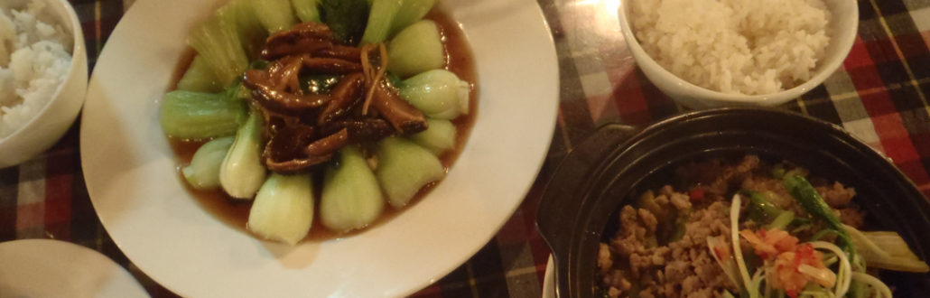 The worst mountain food (not for the weak-stomached): boiled pig feet, upper pig intestine stir-fried with pig liver and mushrooms (OK, the liver and mushrooms was quite good), and lower pig intestine (super mega yuck). We tried it though, with smiles on our faces!