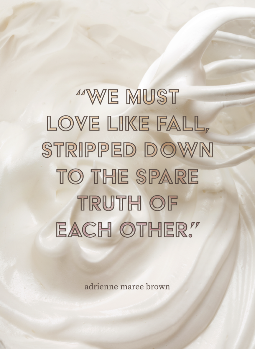 It feels like the season to be still for instance. The season to tap into the wisdom of my predecessors. “We must love ourselves like spring,” author, doula, and Black feminist adrienne maree brown, reminds us. “We must love like fall, stripped down to the spare truth of each other.” It is the season, for me at least, to “feel the great circle of us holding each other.” Channeling the wisdom of Black women’s care work in the kitchen through my own family—in the hopes that I might extend it into an uncertain future—is another, albeit more personal, way of baking against racism.