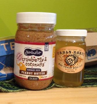 For a unique gift for a party host, grab a jar of Urban Honey, a jar of Yumbutter Cranberry & Coconutty, and a fresh Batch Bakehouse baguette. Tie the goodies up in a cute reusable shopping bag. Encourage the lucky recipient to enjoy morning-after-party breakfast bliss by slicing the baguette lengthwise, toasting it lightly, and slathering it with honey and Yumbutter. A votre santé!