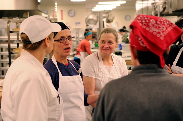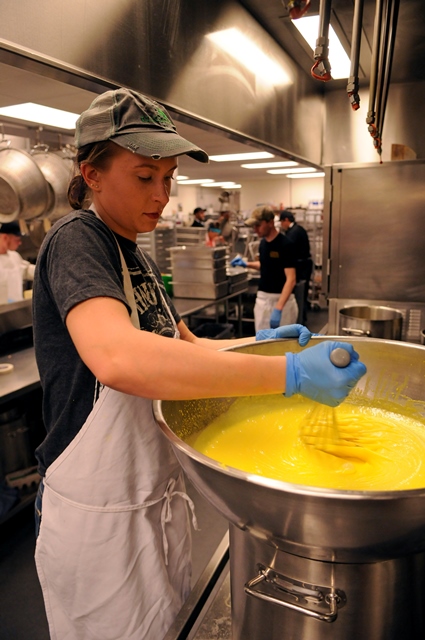 Like many chefs, Rupert strives to source his food seasonally and locally when available. But that’s sometimes not possible given the need to buy on a larger scale than most individual local farms can provide while also remaining economical. Salmon, for example, is bought straight from Alaskan fishermen. There is an on-campus garden, which is used mostly for herbs because growing quantities of vegetables at the level they need—often 200 to 300 orders of something—would be a huge undertaking.