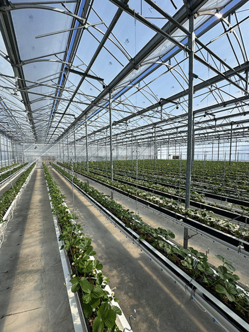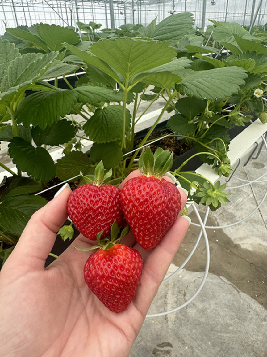 Local strawberries, one of summer’s earliest and most anticipated crops, have taken a hit in recent years due to excessive heat and amounts of spring rain that have massively disrupted strawberry harvests. But at popular Warm Belly Farm, a u-pick operation in Cottage Grove, an everbearing variety of strawberry called Albion is grown indoors in a greenhouse using a hydroponic system that allows the staff to control some of the variants like temperature and irrigation. “Being able to have a predictable baseline in your growing environment is beneficial to having a productive and successful crop,” says Erin Warner, horticulturist at Warm Belly. “We do a three-season approach, we start early in spring and go into the fall, that way we can have strawberries throughout that whole extended season and getting an early start means we have fruit earlier and can get people out to the farm earlier.” Calling Warm Belly Farm’s greenhouse a “mid-tech” approach to season extension, the structure has heat to warm plants in the spring but no way to cool them in summer aside from vents, says Warner. “So, we are still at the mercy of the environment,” she says. In addition to temperature considerations, there is also another crucial thing that the strawberries need to grow even inside a protected greenhouse, says Emily Hebbe, Warm Belly’s chief operations officer. “It could be a really cloudy spring, and if they don’t get enough sun, they won’t grow,” Hebbe says.