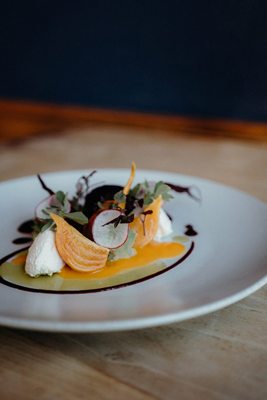 “It forces you to be a little more creative with things,” says Kroeger. Winter often finds a menu with more meat-forward, comforting dishes and the chefs continually finding ways to keep winter squash, potatoes and cabbage intriguing palates.
