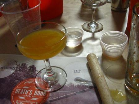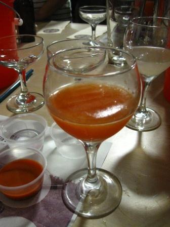 The second drink was "more likely to alienate everyone," said Cameron. Named Tom's Kebab, it combined smoked black tea in gin, tomato pulp, pulverized bell peppers and salt. I liked it, but I couldn't stop sipping on my carrot michelada.