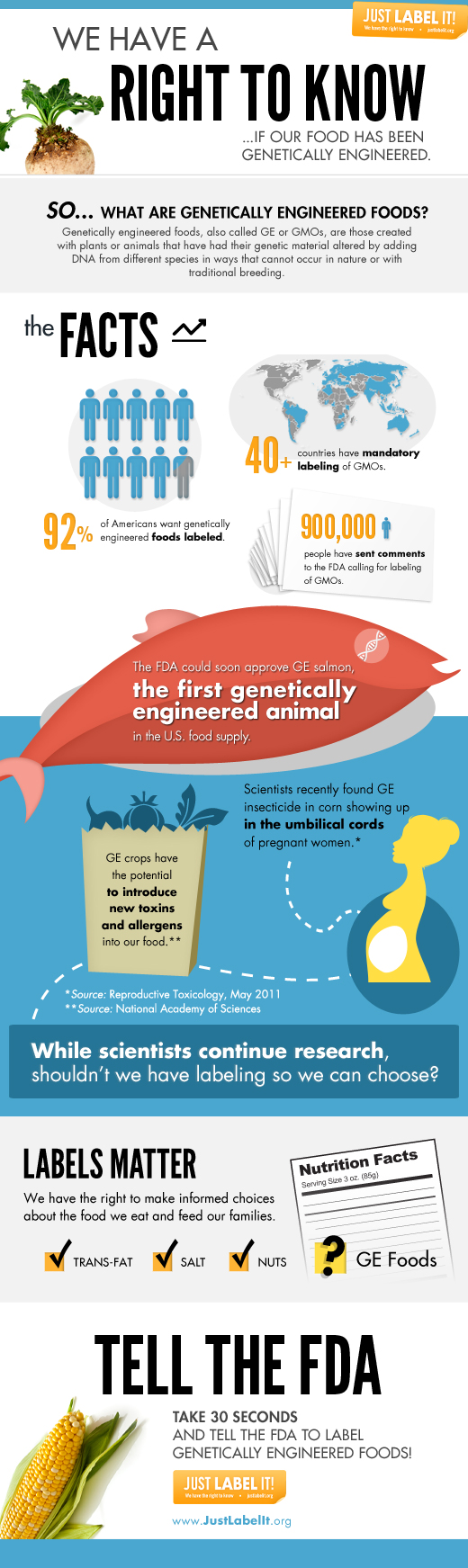Did you know 40+ countries have mandatory GMO labeling? Why isn’t the US among these leaders? 900,000 people have sent comments to the FDA calling for GMO labeling in the US, with19 days left to reach one million. Take Action: Check out this GMO facts infographic from Just Label It and consider supporting this important movement for the sake of our food and farmland. Also read “Searching for the Silver Bullet” by Melissa Hughes and this Edible Nation article by Naomi Starkman for more information about GMOs.