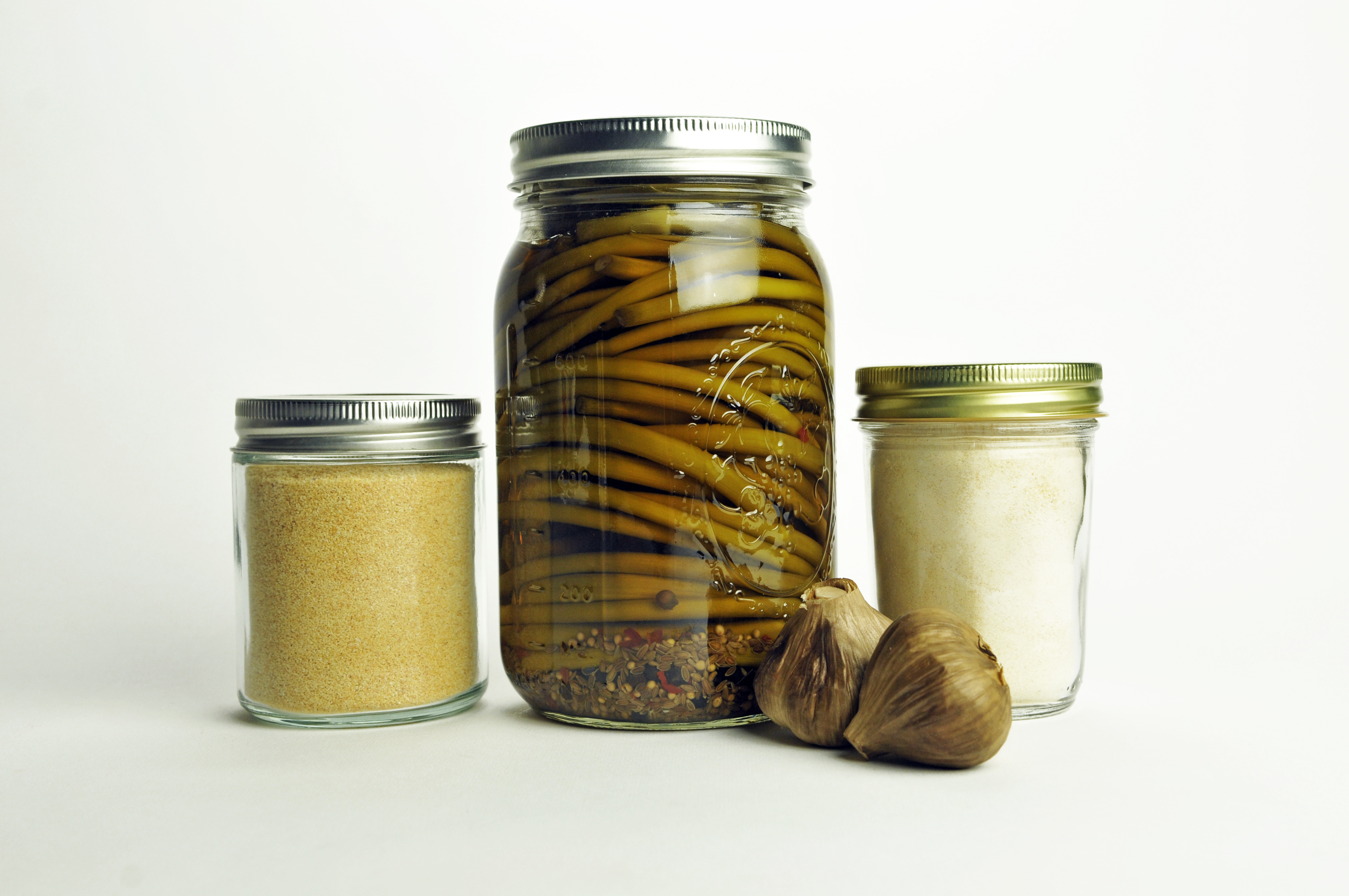 So a couple years ago, the Menns decided to start processing their extra garlic so they could sell it later. Now, each fall, they make massive amounts of pickled garlic and scapes, dried roasted granulated garlic, garlic powder and fermented black garlic.