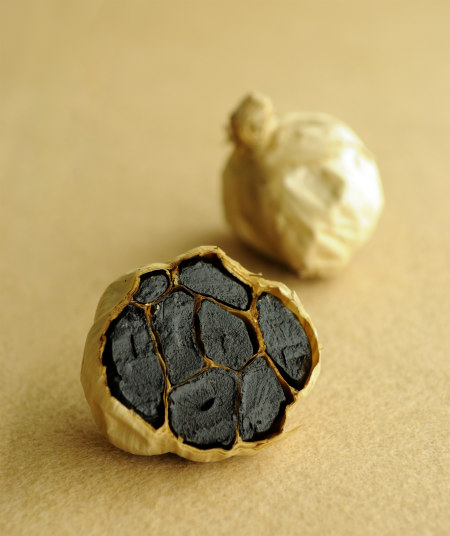 The Menns have been experimenting with fermenting black garlic, too, which is my favorite garlic product. In a very old, all-natural process probably originating thousands of years ago in Asia or the Middle East, whole heads of garlic are fermented in a chamber that maintains specific temperature and humidity levels for up to several weeks. These conditions cause a slow-motion Maillard reaction (the same chemical process that causes browning on baked goods, searing on meat, and toasted marshmallows), turning the cloves gooey soft, sweet and tangy—and totally black throughout. The prolonged low heat breaks down the intense enzymes that give raw garlic its sharpness, turning each fermented clove into a sweet-tangy-umami black gummy treat—more like candy or dried fruit than raw garlic. The process also dries the garlic just enough to help preserve it, and the finished black garlic ready for sale is stable for months without danger of sprouting or rotting like regular garlic. (Once you’ve opened a package, it’s best to store them in the fridge, though.)