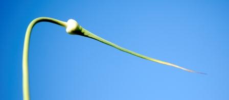 My first walk through a garlic field was on a sunny June day about 15 years ago while visiting a friend’s Minnesota farm. The ground was littered with these sad-looking, broken, curly stems, and I asked my farmer friend what they were all about: “Oh, those are just garlic scapes,” he said. “We break them off to keep all the energy in the bulb, which makes them grow bigger.”