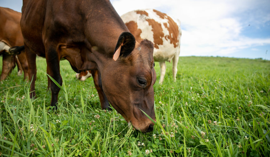 At Paris Family Farm, the cows are three hours into grazing—the sound is soothing as you hear the smack of lips and the crush of fresh grass being evenly munched.