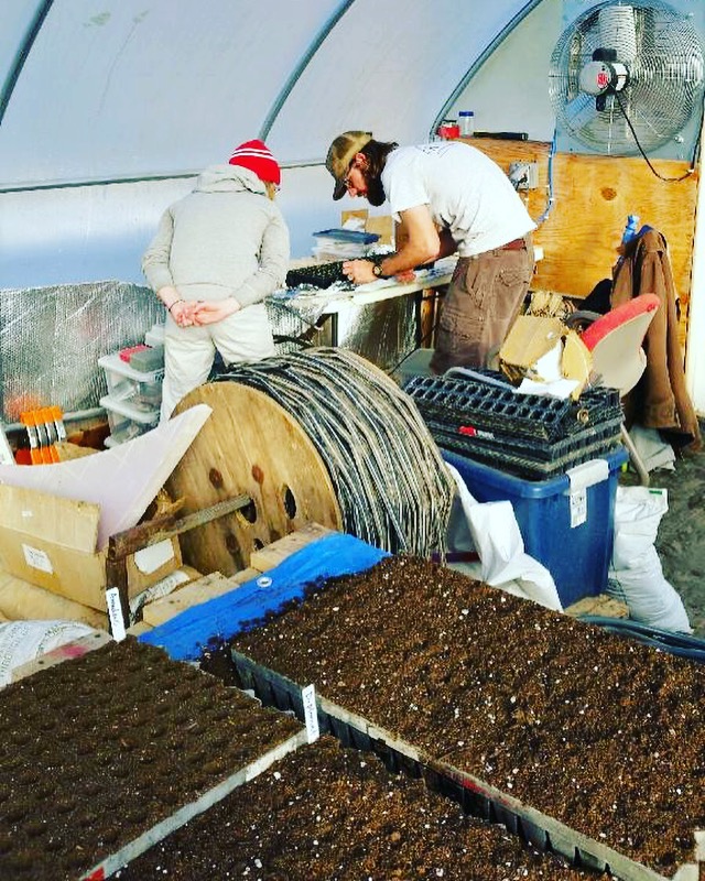 We open the greenhouse door and the sensation is instantaneous. The air is different in here. It’s fresh. It’s earthy. It smells like life and soil. The tables of pallets stretch out in front of us: each day filled with a little more green and a little more excitement for all that lies ahead. The humidity envelopes our whole bodies. We tear off our coats and warm layers, throwing them on the chair by the door. The moisture soaks into our skin immediately.