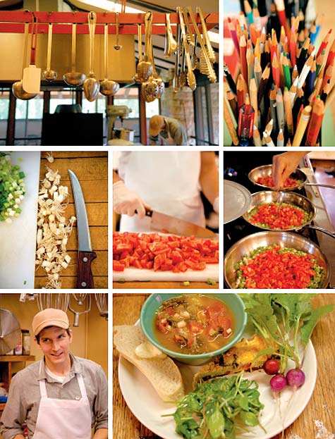 After the harvest, we headed to Hillside Kitchen to deliver the fresh food to Erik Krautbauer, a graduate from the architecture program and the school’s resident cook. Having spent most of his time in kitchens before and after architecture school, he’s clearly at home here.