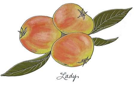 Calville Blanc d’Hiver is another elder originating in 1598 France. This apple has a very strong flavor and is still served at high-end Parisian restaurants. The small and sweet Lady, or Api, also hails from France in 1628. This little lady was often used in Christmas decorations and stocking-stuffers, giving it the nickname of the “Christmas Apple.”