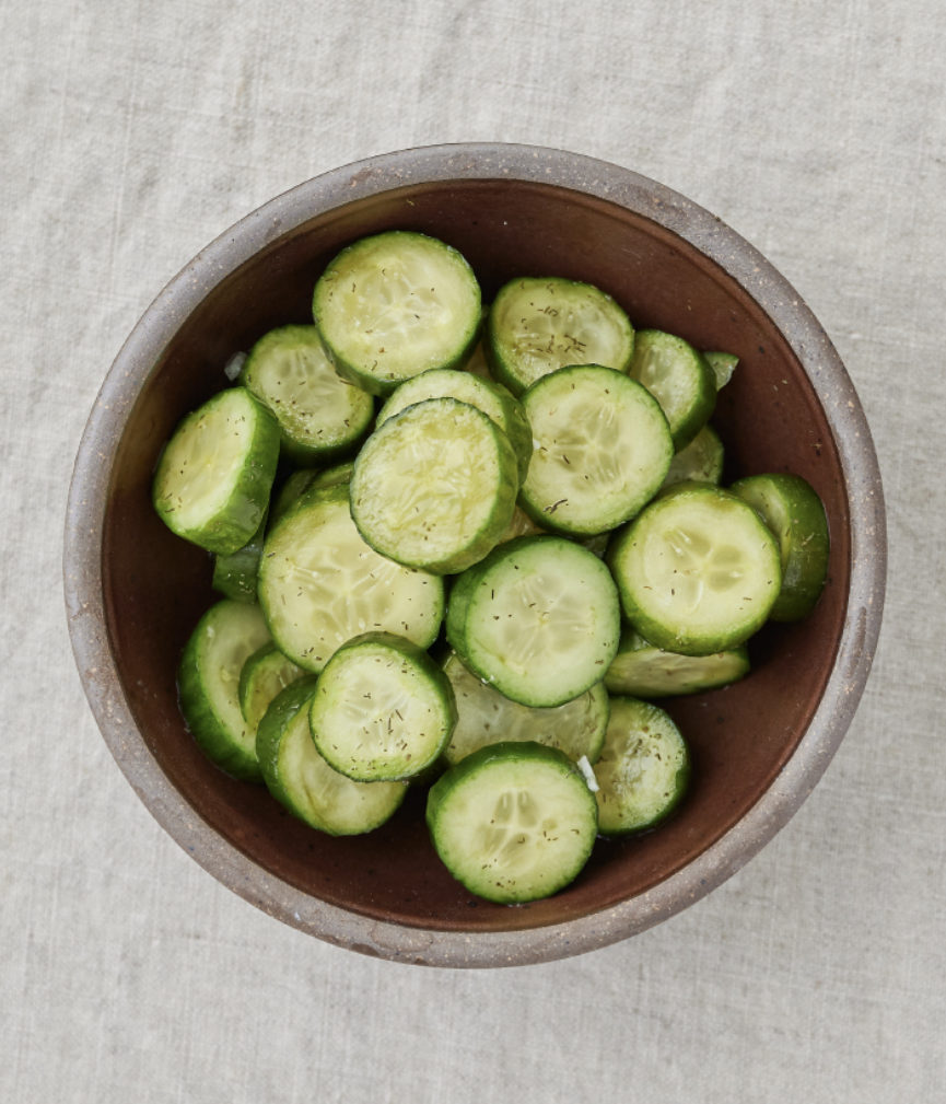 To pickle means to preserve in brine, essentially a saltwater solution, and most people referring to “pickles” are talking about pickled cucumbers. With cucumber pickles, acidity is a key component of the brine, used for flavor and preventing spoilage. In the case of most store-bought and homemade pickles, we often think of vinegar pickles, where a vinegar-based brine preserves pickles with acetic acid. An even more traditional version (found in the recipe below) forgoes vinegar and instead employs fermentation for the acidity of the brine, which comes from lactic acid made in the fermenting process. This process is known as lacto-fermentation, so named because of the lactic acid-producing bacteria that facilitate the fermentation. Lacto-fermented pickles go through a similar process as other fermented vegetables like sauerkraut, with the main difference being that the pickles are submerged in a salty brine, whereas sauerkraut is shredded and mixed with salt to create its own brine, a method known as dry-salting.