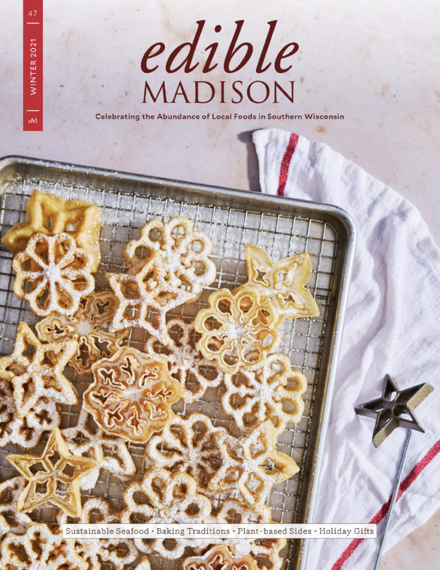 Welcome, winter! This issue has been a fun one for our team to put together. Like a good holiday smorgasbord, it has a little bit of everything. If you’re an adventurous eater, this issue’s for you, because we’ve managed to feature both oysters and liver! We’ve got a long winter ahead of us. What better way to pass the time than to expand your palate a little bit?