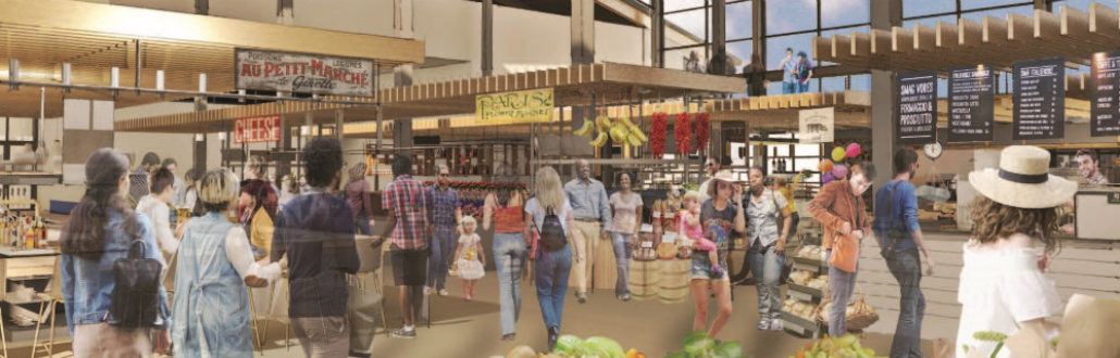 “It’s just a perfect building for it,” says Amanda White, community outreach representative for the market. “The building has floor to ceiling windows and a unique retro feel. It once had to fit fire and garbage trucks for repairs, so it has two-story open spaces without columns. It’s very open and sunny. With the industrial floors and huge garage doors, we’ll be able to bring in food trucks and host winter events. There’s just so much flexibility for permanent and short-term vending options.”