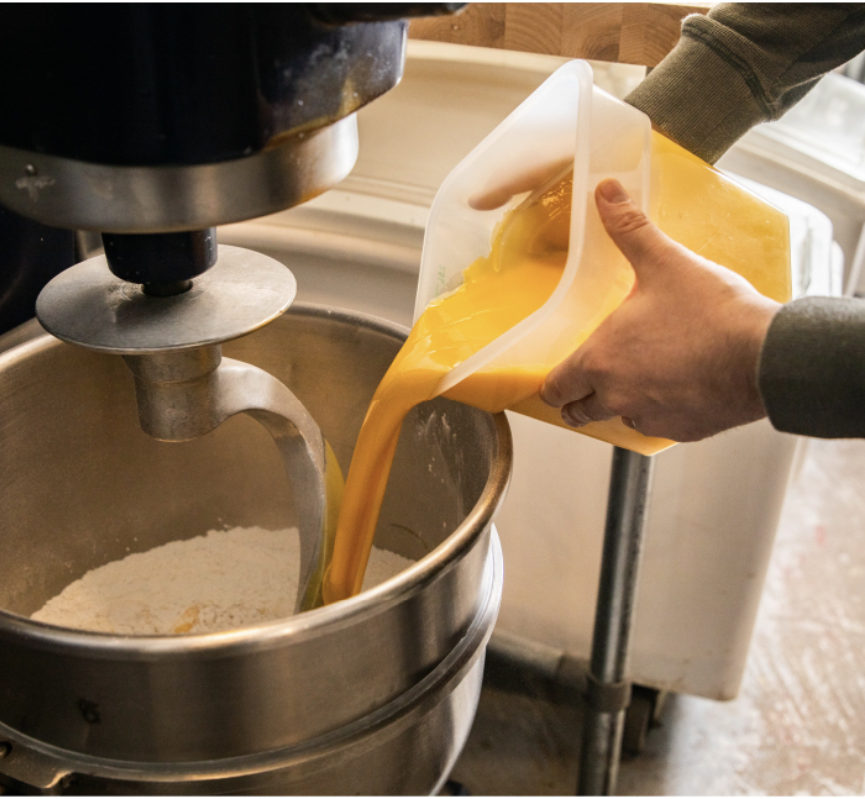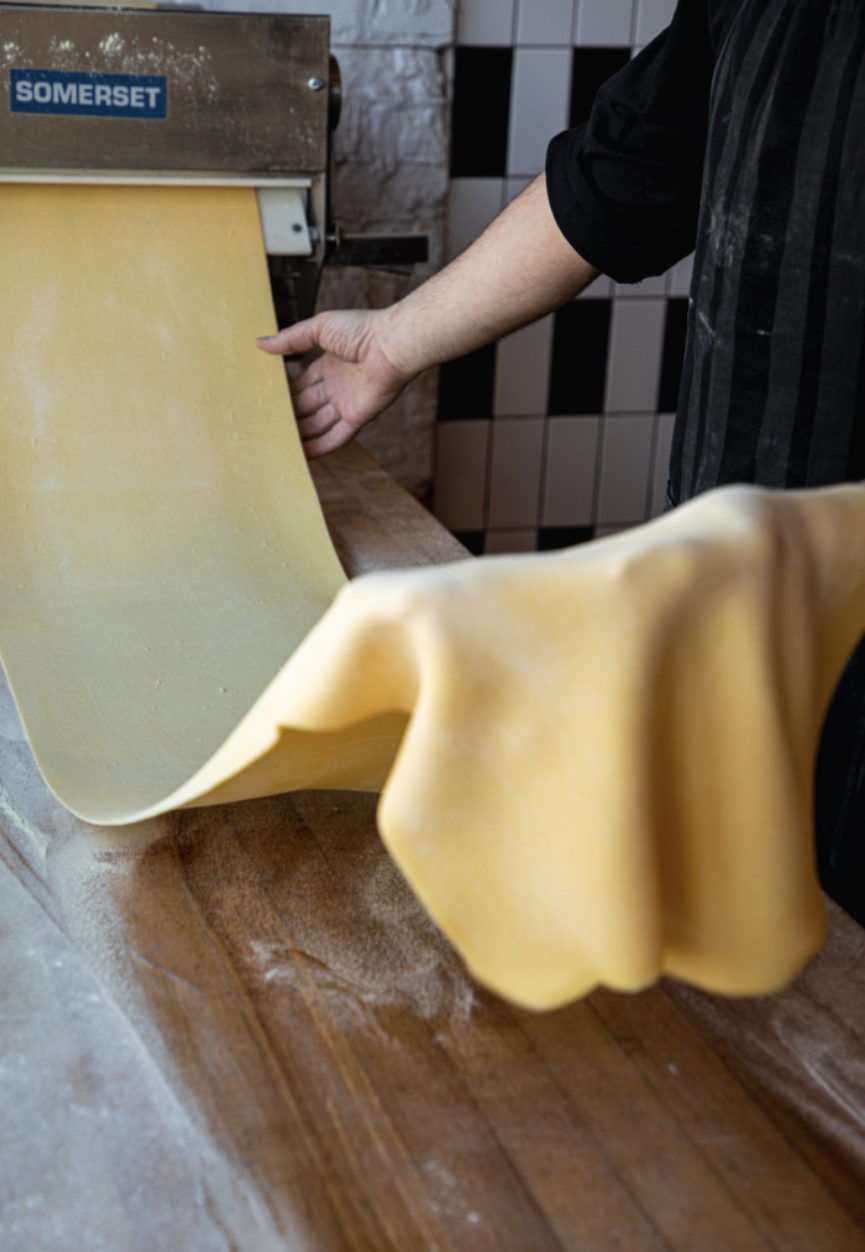“When I started making pasta I was using Meadowlark’s all-purpose flour blended with double zero flour that I’d sourced from elsewhere, but now Meadowlark has a new flour called Snowbird. It’s 100% high protein offers a little more elasticity and it’s way easier to handle and it’s more consistent when we’re cooking it.” Kyle says.