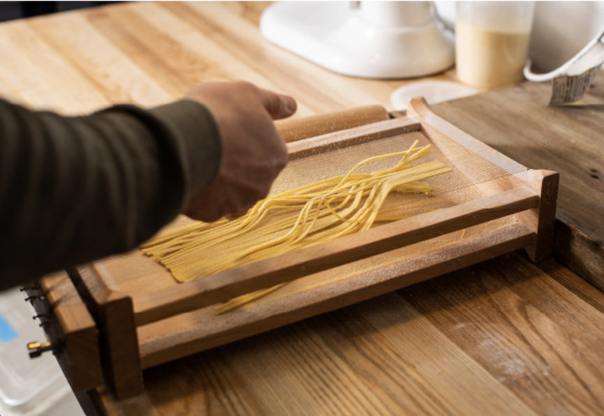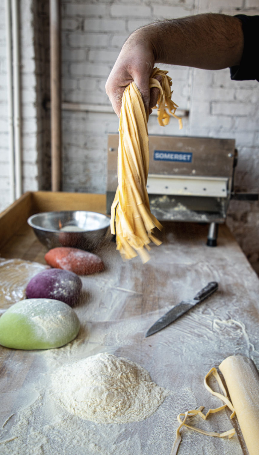 From just four common ingredients—flour, egg, oil and salt—chefs craft myriad shapes and sauces to get us through the hardest time of the year for local food. House-made pasta offers up the comfort we seek. Think hearty ragus or carbonaras for sustenance or for a little hint of spring, pasta and early season greens fresh from the hoop house while we anxiously await overwintered spinach, ramps, asparagus and sorrel that herald the beginning of the growing season across our region.