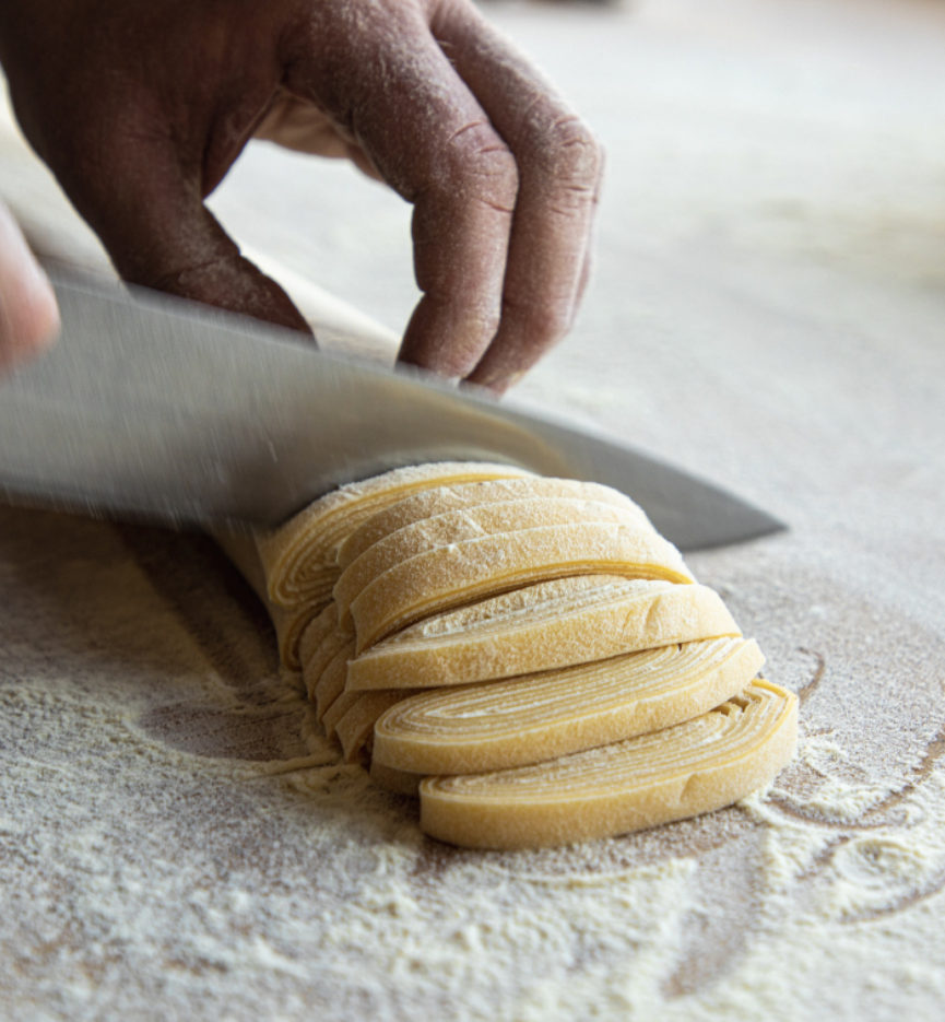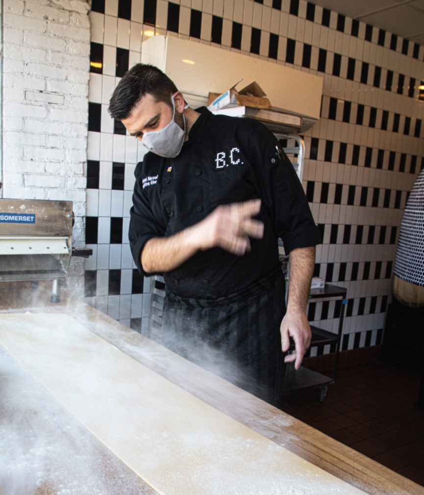 Chef Giovanni Novella grew up along the Gulf of Naples, Italy and by our good fortune, landed in Madison at Bar Corallini, part of the Food Fight Group. He’s trained in Italian pastry but he holds a deep passion for pasta. “I could make fresh pasta all day,” he declares as he throws flour along a freshly rolled sheet of pasta.