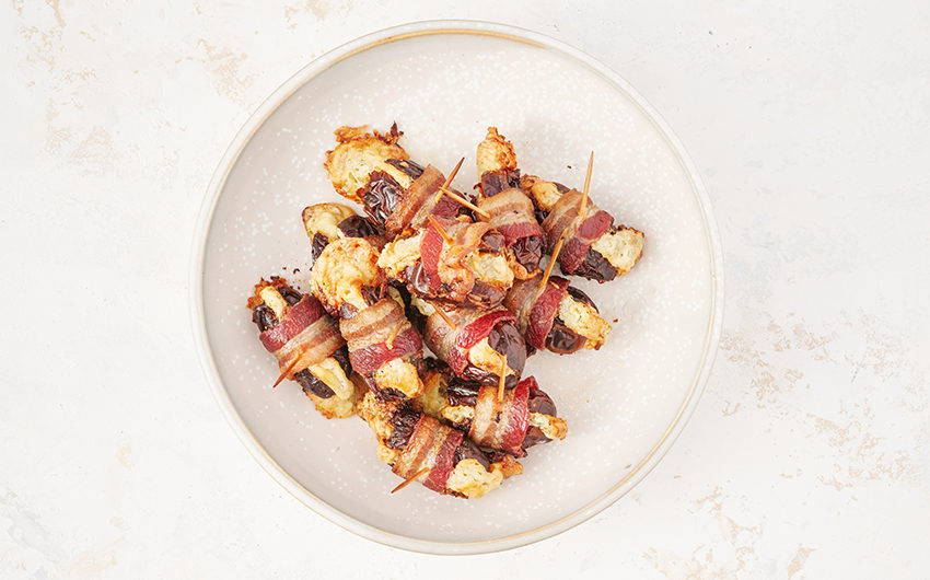 Delicious Wisconsin-made cheeses transport you across the globe in this simple yet stunning dish. These bacon-wrapped dates stuffed with Roth Buttermilk Blue® make a perfect appetizer for fall and winter entertaining.