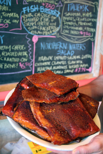 “We are a business and try to stay efficient,” Debbie says. All tomatoes— the perfect, the oddly shaped, those with splits and those that leave the vine too green—have a sales market. Ripened tomatoes find their way into hoagies at the Northern Waters Smokehaus, just over the John A. Blatnik Bridge that joins Superior with Duluth. Owner Eric Goerdt specializes in sausages and cured meats as well as locally caught salmon that is smoked, spiced and served by the sandwich or pound. The Cajun spiked version goes over especially well.